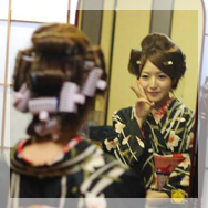 We have a professional beautician who can do all kinds of hairstyles and makeup, both casual and traditional. In fact, if your hair's long enough, you can even get it done in the apprentice geisha style!